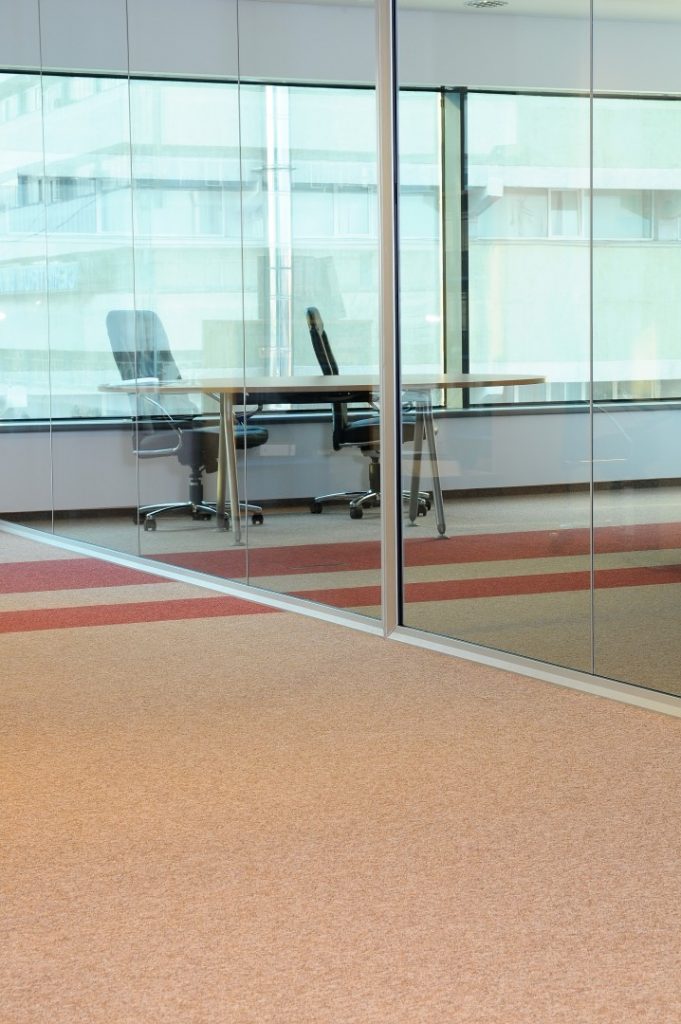 The solution we have implemented was: elegant slim frame single glazed partition, directional carpet with different zoning areas. Within furniture, we have combined the existing products with few significant items meant to assure the right combination and facilitate optimal operation procedure.