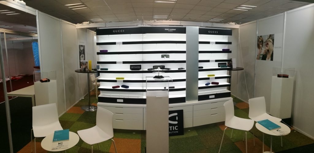 In anul 2018 am primit sarcina de a amenaja standul GUCCI in cadrul targului de optica si optometrie Brasov. Avand la dispozitie un spatiu redus, fiind prima aparitie in Romania a reputabilei firme de design in domeniul opticii, a trebuit sa utilizam elemente de prezentare care sa acomodeze o mare parte din ramele reprezentand colectia din acea perioada, o zona de discutii private cu clientii separata in 3 zone cu o minikitchineta in care se gasea si cafetiera, am utilizat displayuri de la reputata firma Presenta Nova si produse design Gaber (Italia). Conceptul celor de la Gucci fiind Gucci Garden (GG) am utilizat o mocheta in dale Burmatex care da senzatia de pajiste cu tonuri diverse de culori, si un suport special pentru pitonul Gucifer – care a fost si el prezent de asemenea. Zona amenajata: 20 m2.