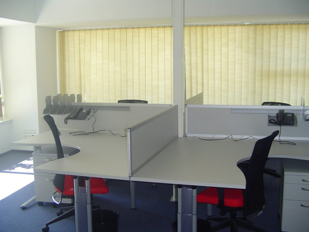 We supplied dismountable partitions with interior venetian blinds, reception furniture and waiting area, meeting tables and mobile visitor chairs on castors, operational desks with task chairs in mesh backrest and division panels fully accessorized. Each cluster desk was supplied with high volume of power and data cables meant to facilitate communication of the employees.