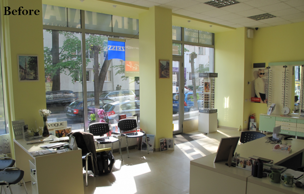 Aspectul de prospetime si profesionalism, este dat de continuitatea detaliilor, de aliniere si identificare a zonelor de expunere pe diferite branduri, iluminat direct si indirect pentru fiecare spatiu.De asemenea, am reusit sa realizam separarea spatiilor din interiorul magazinului prin colantarea usilor de sticla existente, utilizand folie Window Grafic.