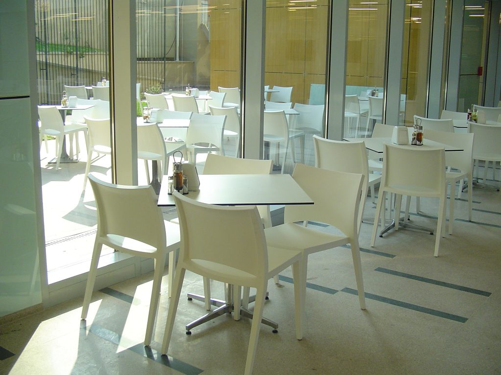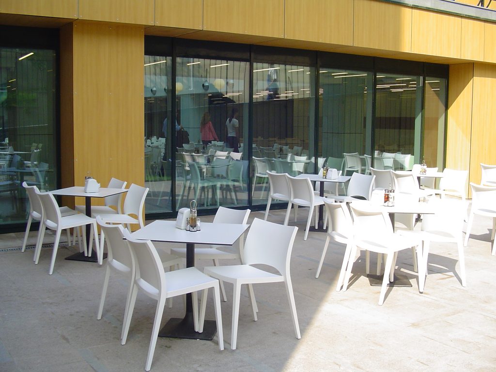 La indicatiile arhitectului S-Park, am furnizat mese de bistro, scaune din plastic joase cu 4 picioare si scaune de bar, mese si scaune care pot fi utilizate in exterior, placari din sticla pentru pereti, precum si alte elemente specifice de mobilier si decoratii.