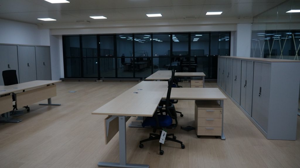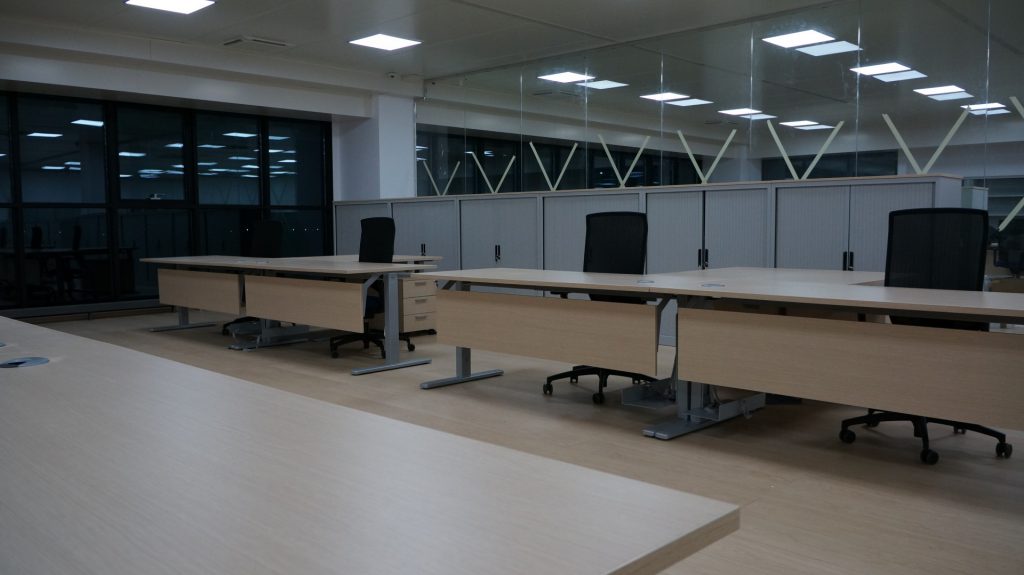 We supplied office furniture, partitions, accessories, ergonomic Dauphin office chairs with highly advanced ergonomic technology, meeting tables, tambour doors cabinets on different heights with wooden tops, modular reception furniture, furniture for the bistro area and many other decorative items.