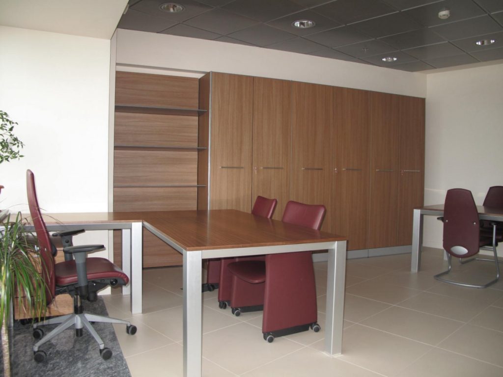 Besides we procured custom build products for dedicated areas within the bank and the first furniture product you may see as you enter the building: the main reception unit with an elegant Italian product.