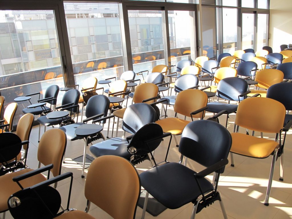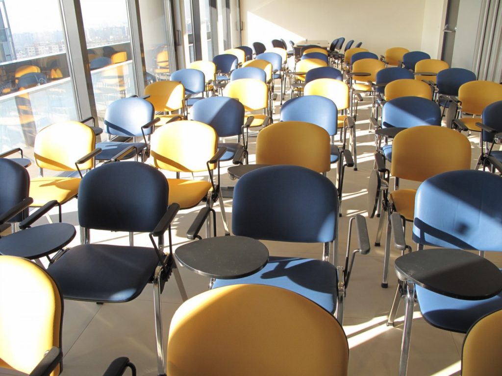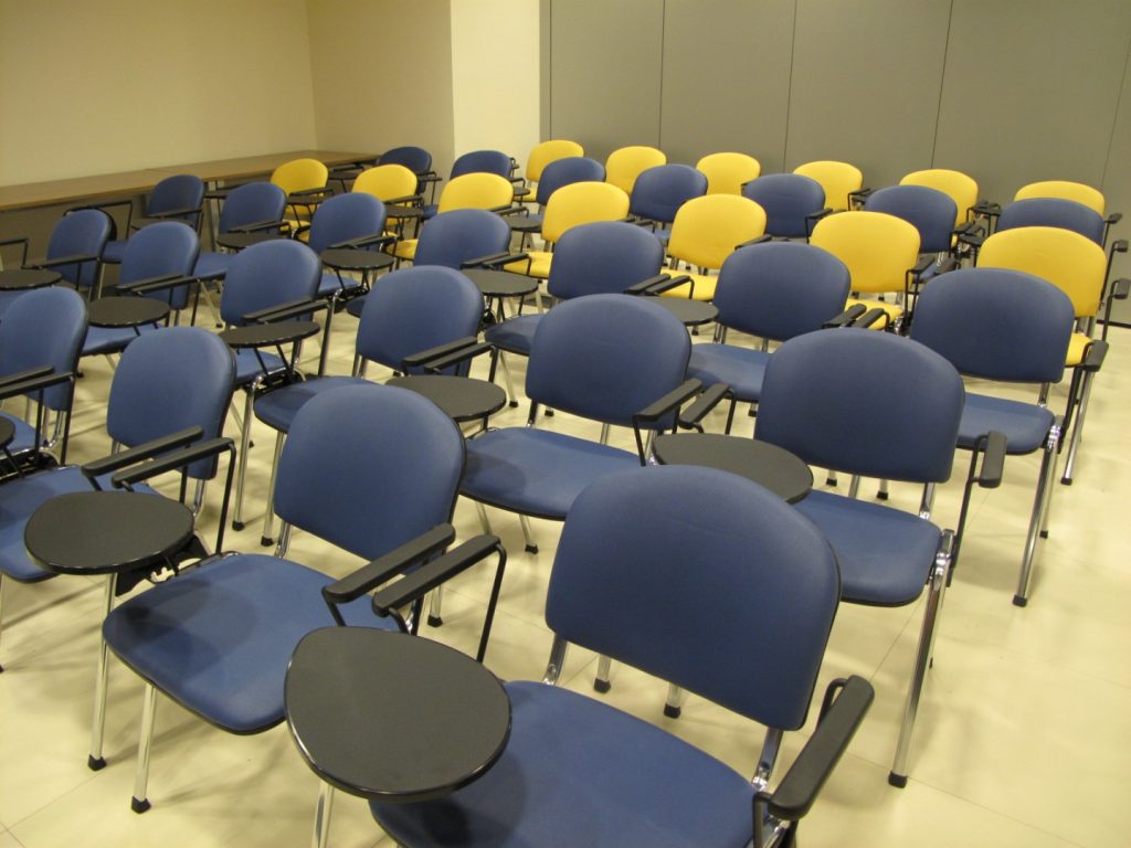 Presentation halls, auditorium products were other furniture items that Interior Resources were entitled with supply of: 4 legs chairs with folding writing tablet were supplied in this area.