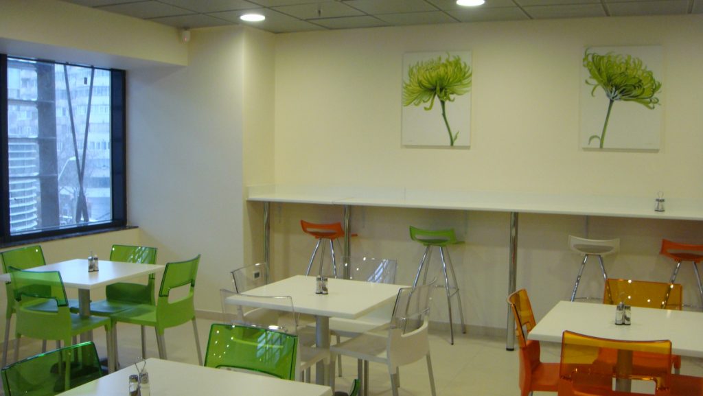 Another important topics was the supply of the internal bistro / canteen area where transparent, elegant products were designed specifically to match the interior thinking of the Greek architects.
