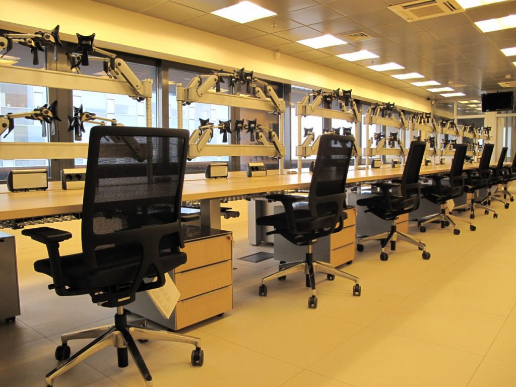 Interior Resources supplied the complete dealing department with specialized dealing room furniture, ergonomic Sedus Open Up task and visitor chairs, executive and meeting furniture.
