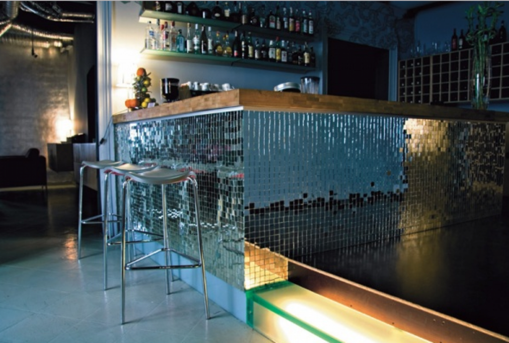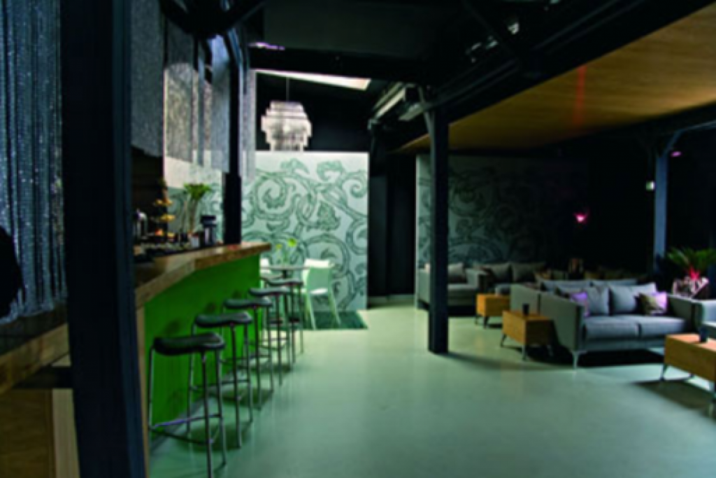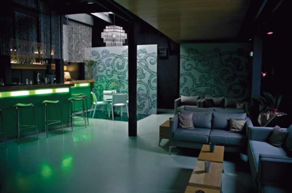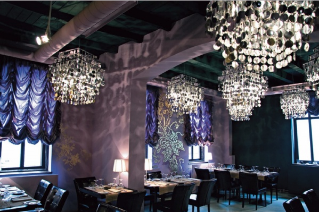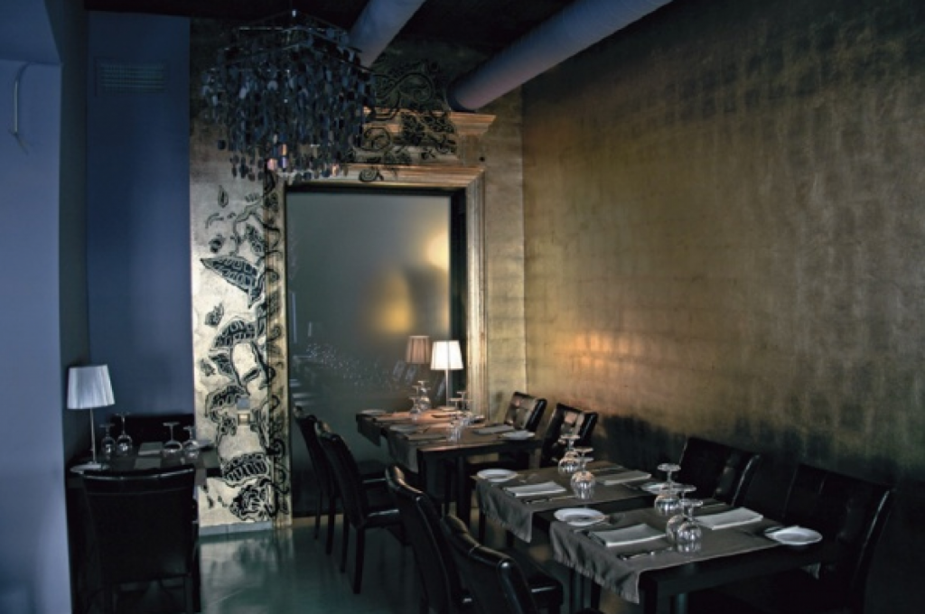 Salonul restaurant a fost decorat intr-un concept modern, pornind de la prezența puternică a belladonnei sau Mandragorei, în fundalul pereților vilei, creând o impresie interesanta de legătură între departamentele funcționale ale restaurantului.